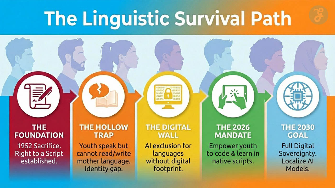 As we reach the milestone of International Mother Language Day 2026, the stakes are clear. We are not just fighting for a holiday or a hobby. We are fighting for the survival of human thought. The martyrs of 1952 gave their lives for a script. Our task today is less bloody but just as urgent. We must ensure that our digital future has room for every voice and every alphabet.