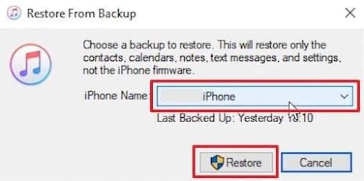 Step 2. As you see a dialogue box, choose the newest backed-up file and hit the “Restore” button.