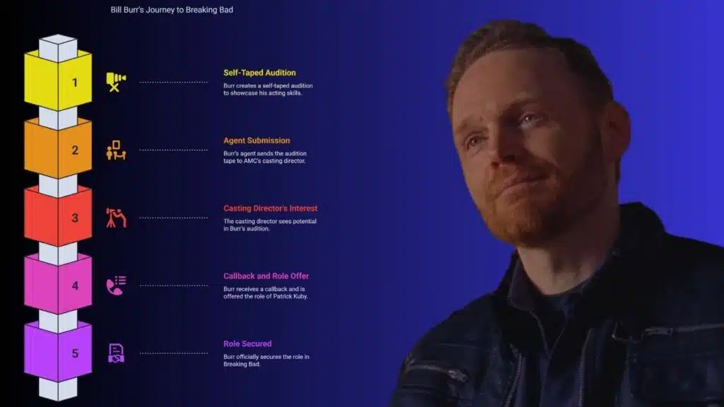 His agent found a casting call for Breaking Bad, then pitched Bill Burr directly. She sent a message that linked Bill Burr’s stand-up clips and monday morning podcast stats, highlighting his growth as an american stand-up comedian.