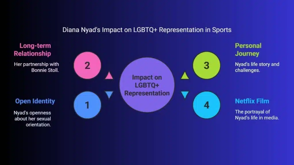 Diana Nyad stands as a bright light for LGBTQ+ folks in sports. As an openly lesbian athlete who made history with her Cuba to Florida swim, she shows what’s possible. Her success breaks old ideas about who can be a top athlete.