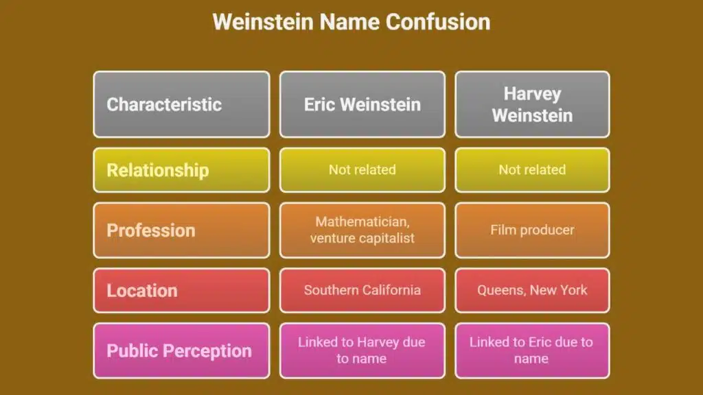 The mix-up feels like a name tag swap at a big party. A last name can stir up odd tales, and that is true for Weinstein. People link Eric Weinstein with Harvey Weinstein by accident.