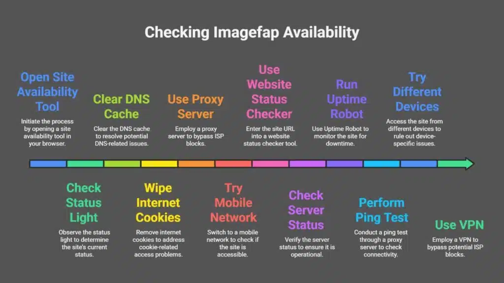 Servers may halt imagefap.com traffic for upkeep or under heavy load. Users saw site unavailable in July 2025 during a maintenance check. A route tracing tool via a proxy server can spot the outage.