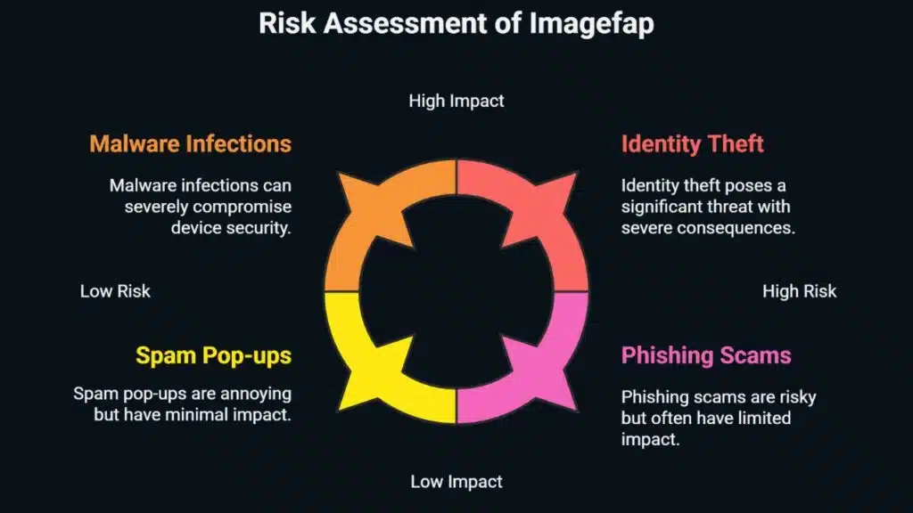 Shady banners on Imagefap can drop spyware Trojans into your device, they track keystrokes even behind a VPN. Slick ads may run phishing scams, they can swipe your card details or spark identity theft nightmares.
