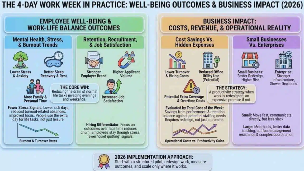 In 2026, well-being outcomes are often the clearest win—when the model is implemented honestly and workloads are managed.