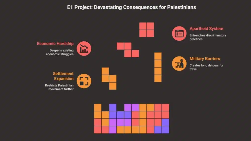 The E1 corridor is critical because it forms a narrow land bridge linking the northern and southern parts of the West Bank. For Palestinians, this corridor was always envisioned as the natural link between Ramallah in the north and Bethlehem in the south, cities that sit just 22 kilometers apart but require long detours through Israeli checkpoints. If built, the settlement would cut the West Bank in half, isolating East Jerusalem from the rest of the Palestinian territory and making a future contiguous Palestinian state nearly impossible.