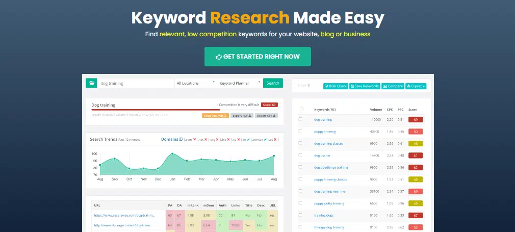 Finally, KeySearch is an affordable keyword research tool that helps you find low-competition keywords related to your niche