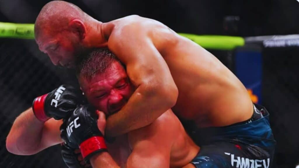 Chimaev’s relentless grappling forced Du Plessis onto the mat in every round. Each time the South African champion tried to reset on the feet, Chimaev shot in again, chaining his wrestling with punishing ground-and-pound strikes.