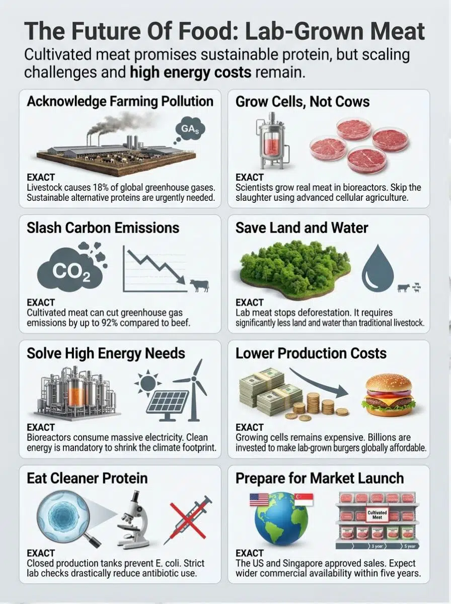 Lab-grown meat makes food production smarter. It offers a fresh way to boost sustainability and cut climate impact, so it’s worth taking a closer look at what it actually delivers.