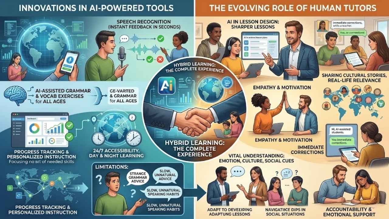These days, hybrid learning is catching on. It mixes instant digital help from language learning apps with human guidance for a complete experience. Teachers remain vital because they understand emotion, culture, and social cues while adapting lessons if progress slows down or confidence dips.