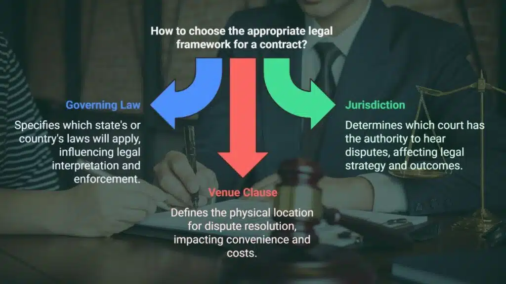 Make sure you know which laws apply and where legal issues will be handled. Some states or countries have more favorable laws for one party. Jurisdiction determines where a legal dispute would be resolved. Understanding the legal venue can affect the time and cost of litigation.