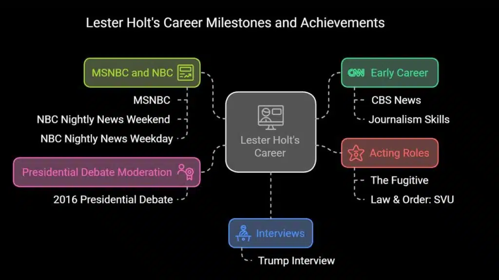 He interviewed Trump in 2017. Holt acted in films like The Fugitive and Primal Fear. He appeared in TV shows like Law & Order: SVU and 30 Rock. Lester Holt stays a trusted name in journalism with a career full of milestones.