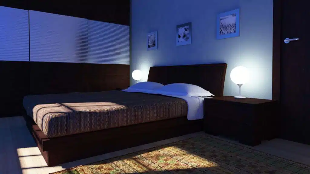 - Use dimmed lights to transition your bedroom from day to night effortlessly.