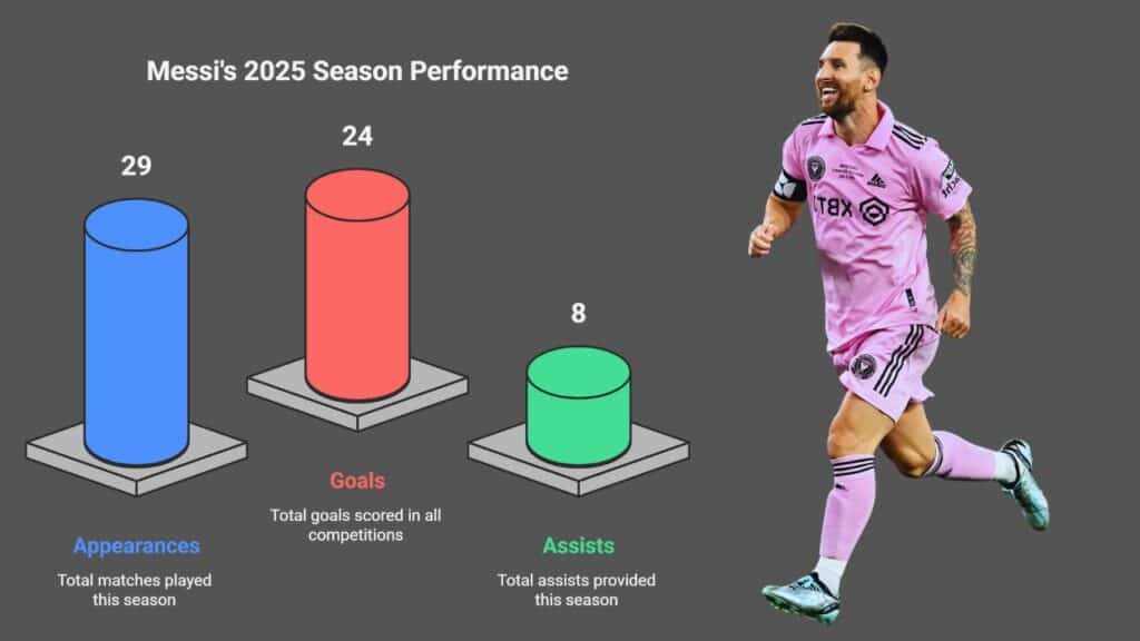 Despite being 38 years old, Messi continues to shine for Inter Miami. According to Transfermarkt, he has made 29 appearances in all competitions this season, scoring 24 goals and providing 8 assists.