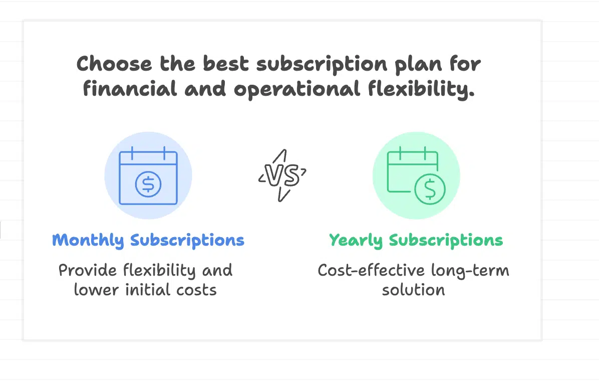 In addition, annual subscriptions frequently offer benefits like improved customer service or the ability to use premium features. These additional features can enhance the user experience by offering more value than just saving money alone. However, companies need to evaluate their future requirements thoughtfully because opting for a yearly subscription may limit flexibility when situations change.