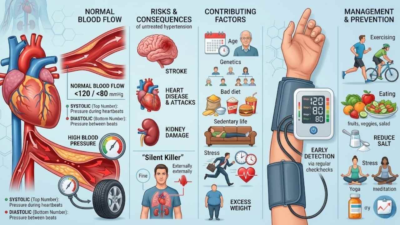 High blood pressure often creeps in after long, stressful days, putting extra strain on the arteries and increasing the risk of heart disease. Busy schedules, excess salt, and lack of exercise can quietly push those numbers higher.