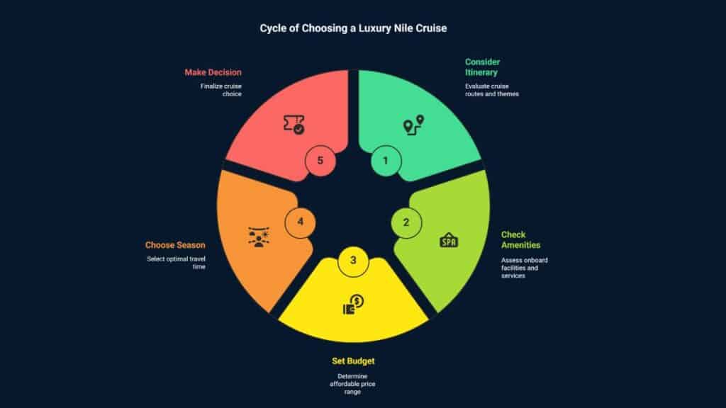 Choosing the right luxury Nile cruise is key. Look at the itinerary, amenities, and budget to decide.