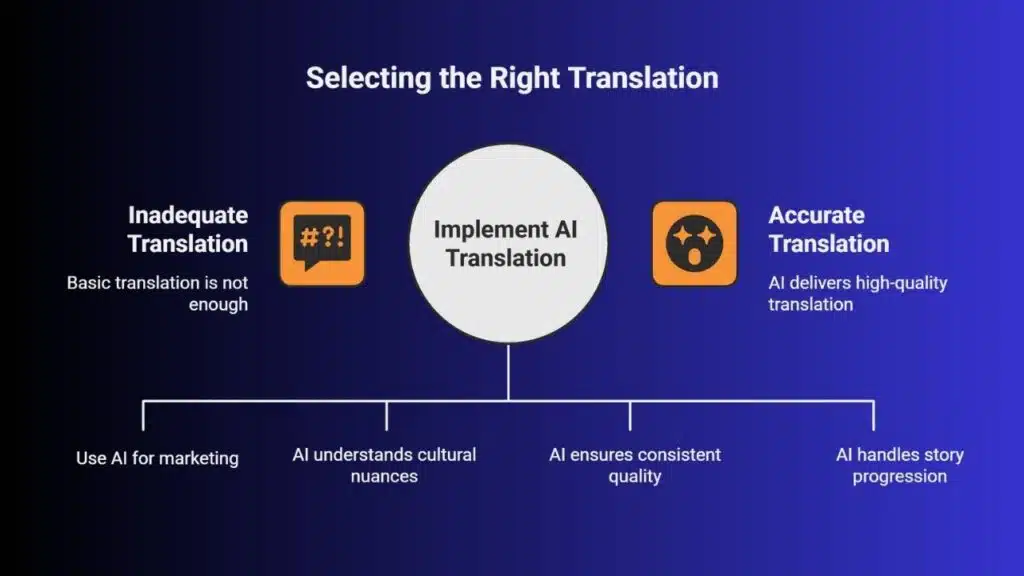 - Contextual Continuity: Advanced AI understands story progression and character relationships, ensuring translated dialogue maintains narrative coherence.