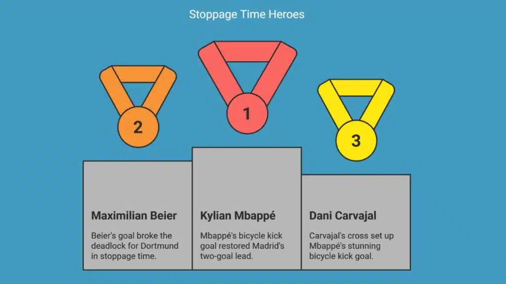 Just when the game seemed to be winding down, it erupted in chaos during second-half stoppage time. Maximilian Beier finally broke through for Dortmund in the 91st minute, slotting the ball past Courtois after a defensive lapse from Madrid allowed a fast break.