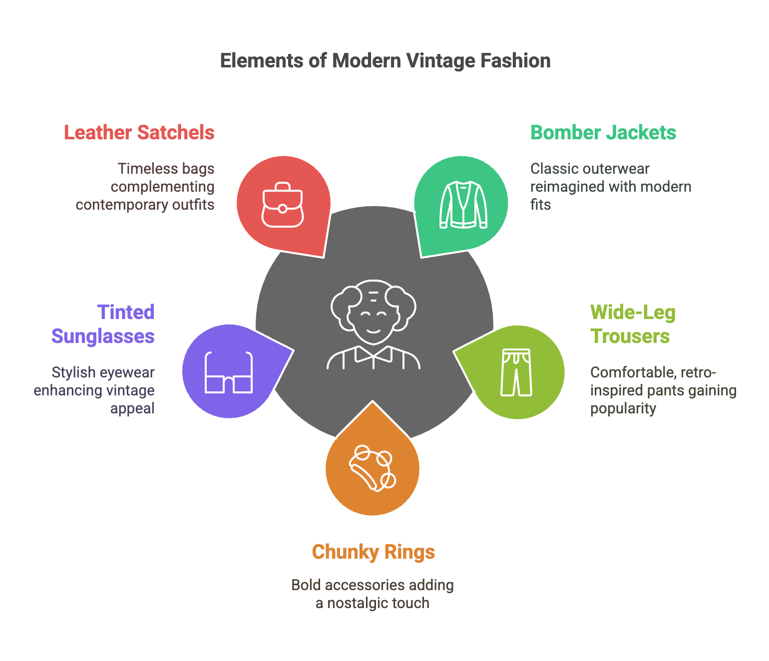 - Chunky rings, tinted sunglasses, and leather satchels add a nostalgic touch. Mixing vintage accessories with contemporary outfits creates a perfect balance between old and new. This combination allows for a unique and personalized style that stands out effortlessly.