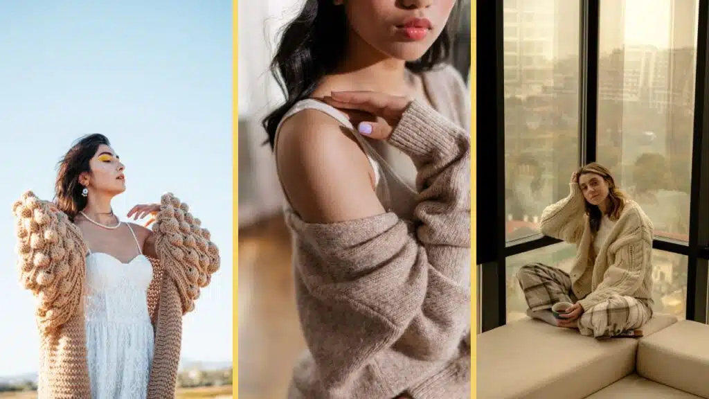 A neutral-colored sweater, such as beige, cream, or grey, is a perfect layering item for colder months. It pairs effortlessly with jeans, skirts, or over dresses.