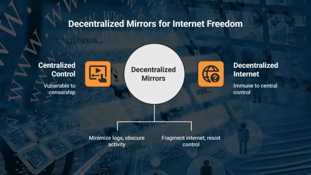 Think of the internet as a massive library, and censorship as a process of locking certain doors. Without mirrors, those doors stay closed indefinitely. With mirrors, a new door appears—often just around the corner—leading to the same information.