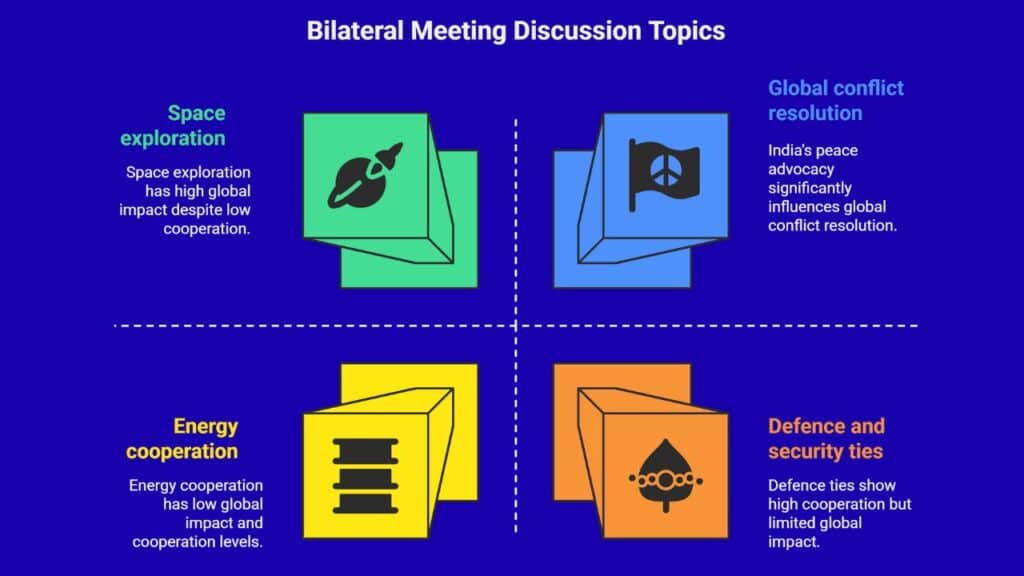 - Global conflict resolution, including India’s role in advocating peace in Ukraine.