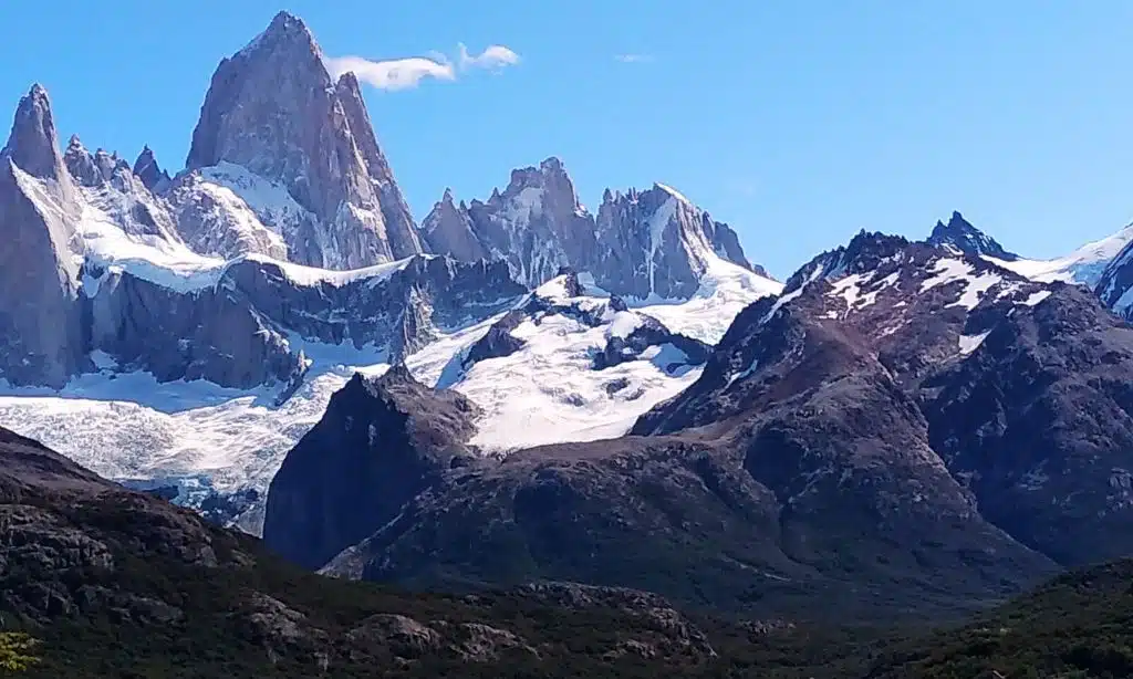 Its shark-toothed summits intermittently hide behind menacing clouds and lashing storms. Sun breaks reveal Fitz Roy’s majesty and refresh the aquamarine glacial lakes dotting its slopes. The range shares space with 13 other peaks exceeding 10,000 feet in Los Glaciares National Park.