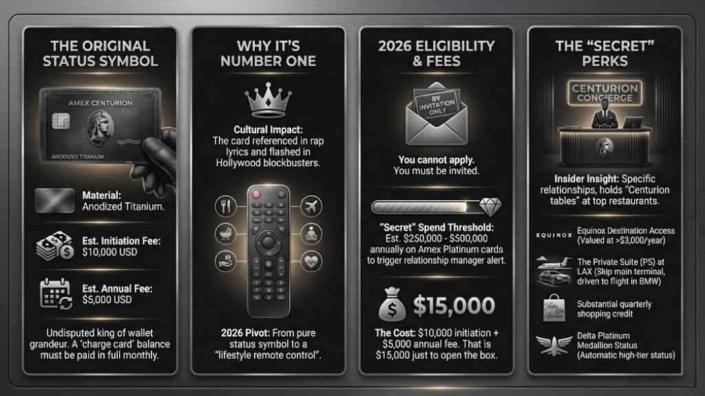 While other cards may have higher asset requirements, the Centurion holds the crown for cultural impact. It is the card referenced in rap lyrics and flashed in Hollywood blockbusters. But in 2026, Amex has pivoted the Centurion from a pure status symbol to a “lifestyle remote control.”