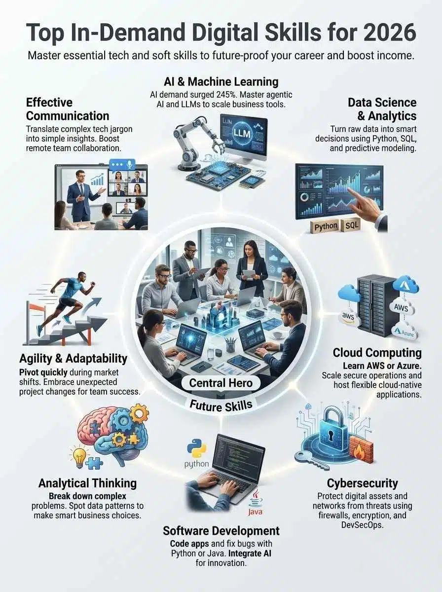 Communication ties it all together, sharing insights that drive team success. This combo opens doors in 2026’s skill economy.