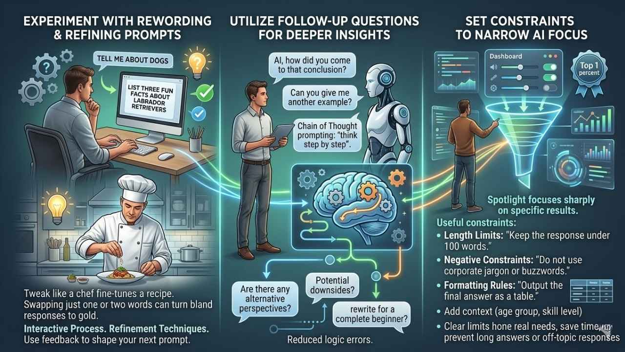 Prompt Optimization works best as an interactive process. Instead of searching for the perfect magic phrase on the first try, use feedback from each response to shape your next prompt. This approach mirrors how conversational AI learns through Refinement Techniques and query optimization.