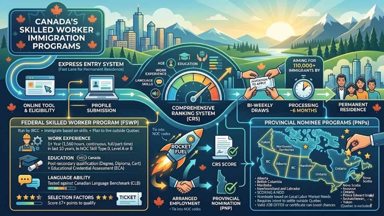 Hey, if you’re a skilled worker dreaming of maple syrup and mountains, Express Entry is Canada’s fast-track immigration program. It uses a points system to rank folks based on skills, work experience, and language ability. Picture it like a job interview where your resume scores you permanent residence.