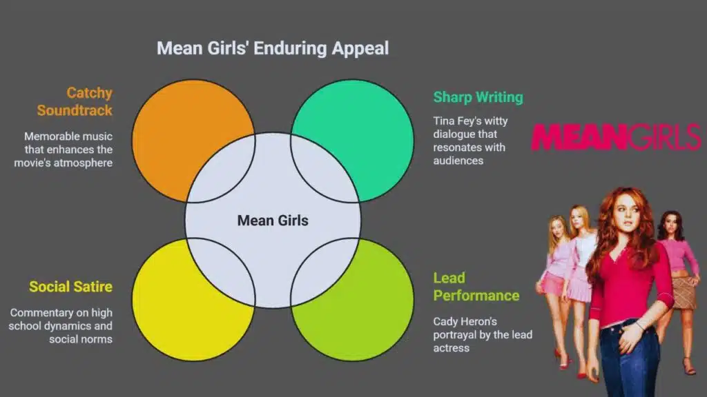 Mean Girls hit screens in 2004. A major studio released this teen comedy. Tina Fey wrote sharp lines that still sting and amuse. The lead actress brought Cady Heron to life. High school seniors saw their own dramas on screen.