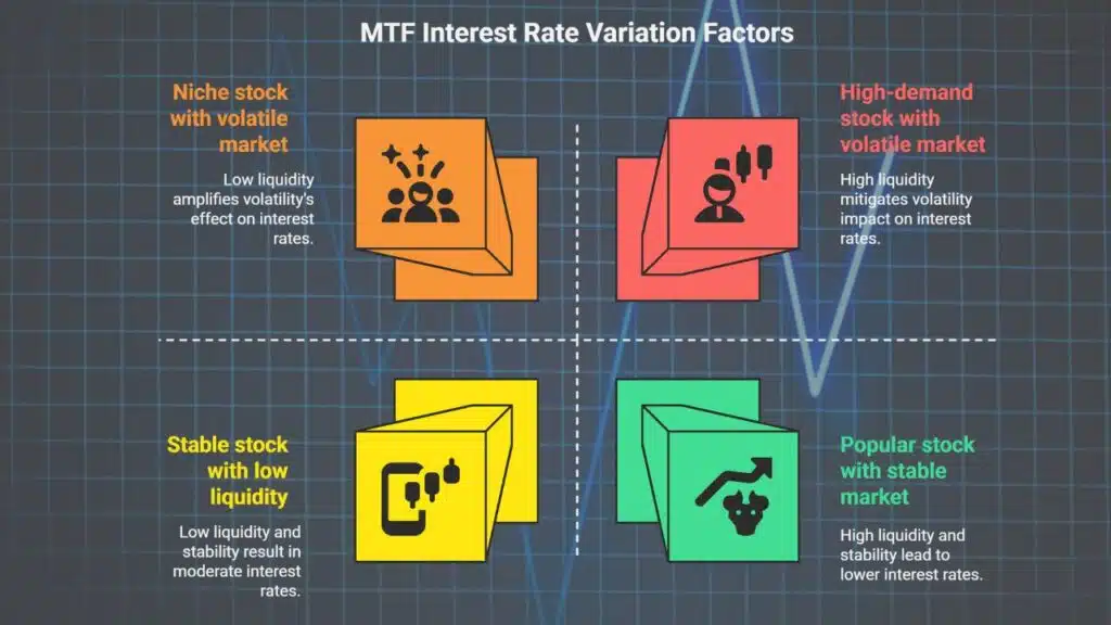 Different brokers have different MTF interest rates. This variation is attributed to factors such as prevailing market conditions, liquidity for a particular stock, and the policy of the brokerage firm.