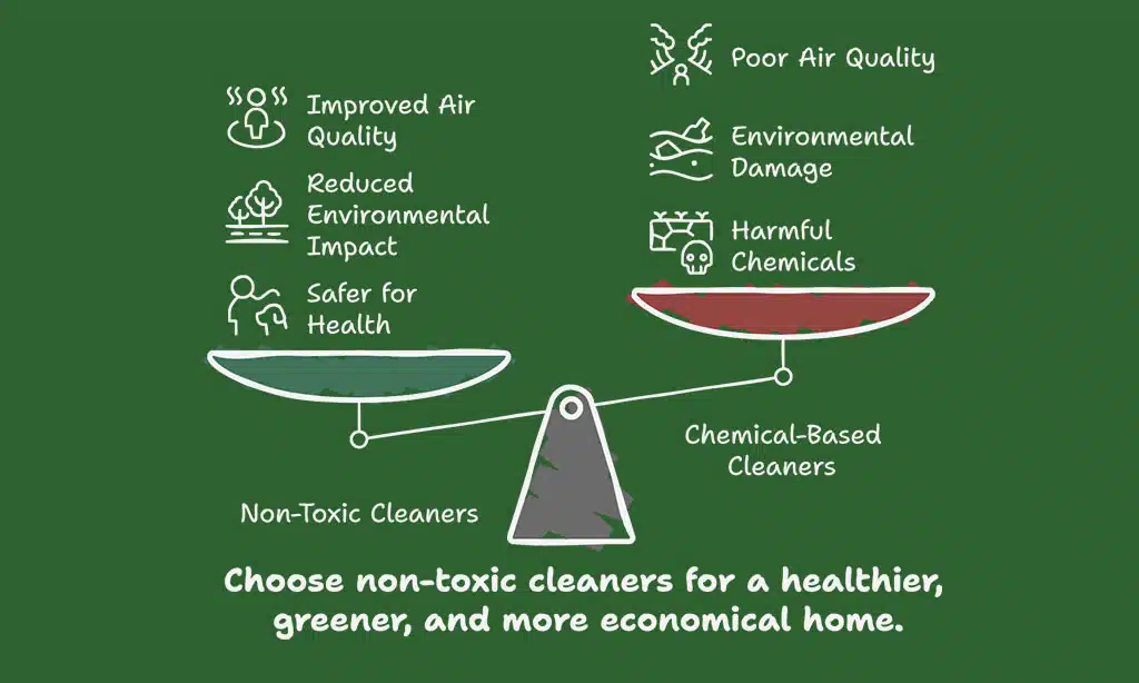 Non-toxic cleaning products skip these harmful ingredients. Instead, they use safer options like plant-based formulas or essential oils. This helps protect children, pets, and indoor air quality.