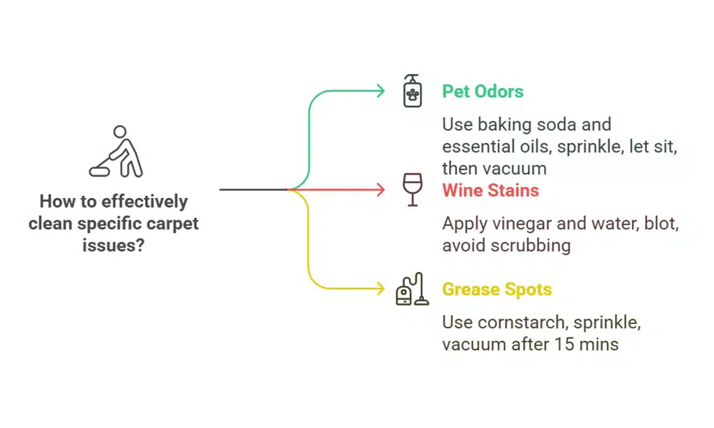 | Pet Odors | Baking soda, essential oils | Sprinkle, let sit, then vacuum |