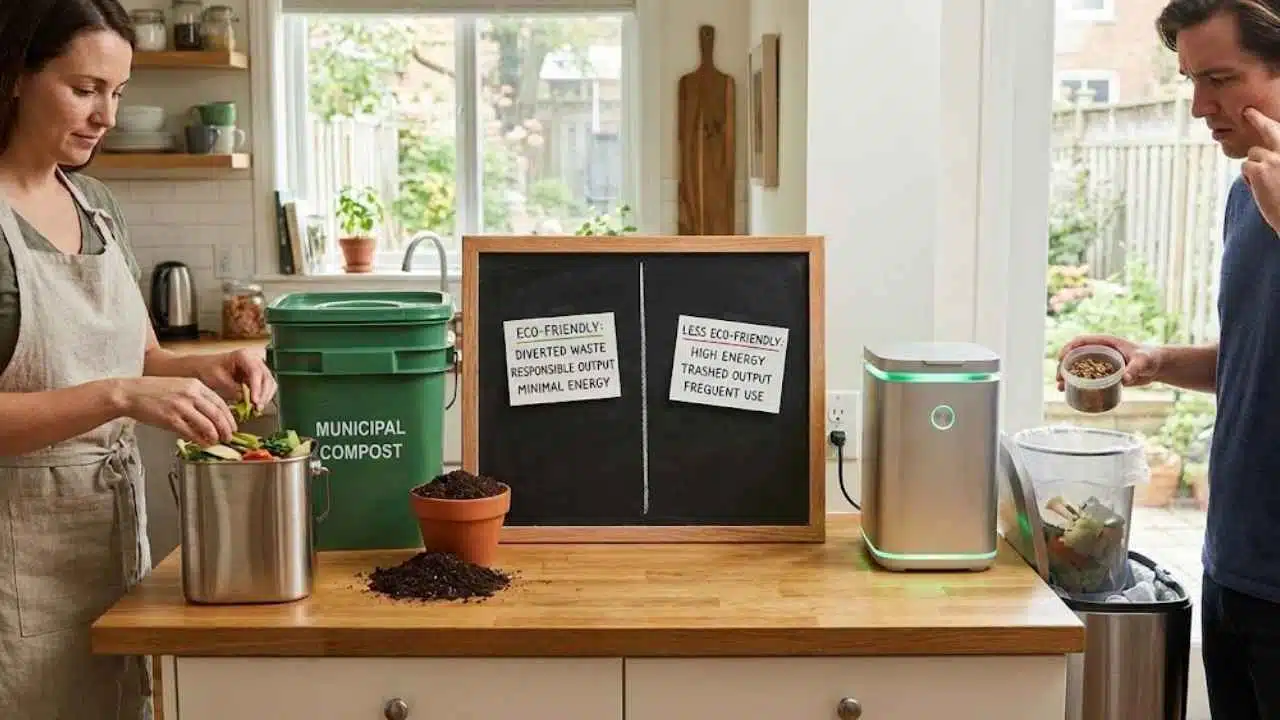 But here is the truth: not every “indoor composter” does the same job. Some are simply better scrap containers. Some are electric machines that dry and grind food. Others use microbes or fermentation to break scraps down over time. If you buy the wrong type, you might end up with a hot gadget that still needs careful use, or a “compost” product that is not actually compost.