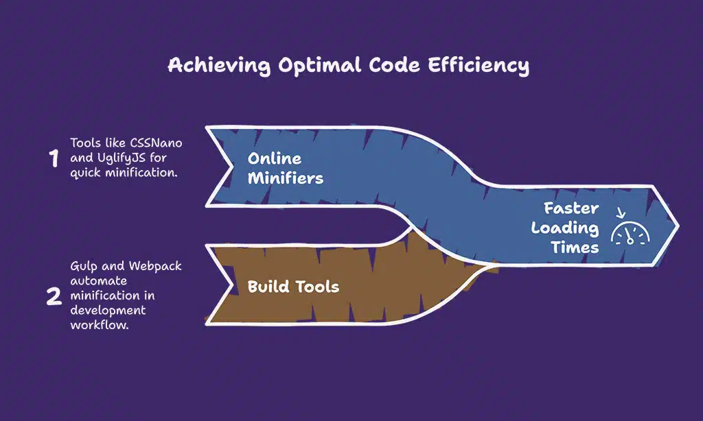 Integrate build tools like Gulp or Webpack into your development workflow to automate minification. This ensures that every time you deploy your site, your files are optimized.