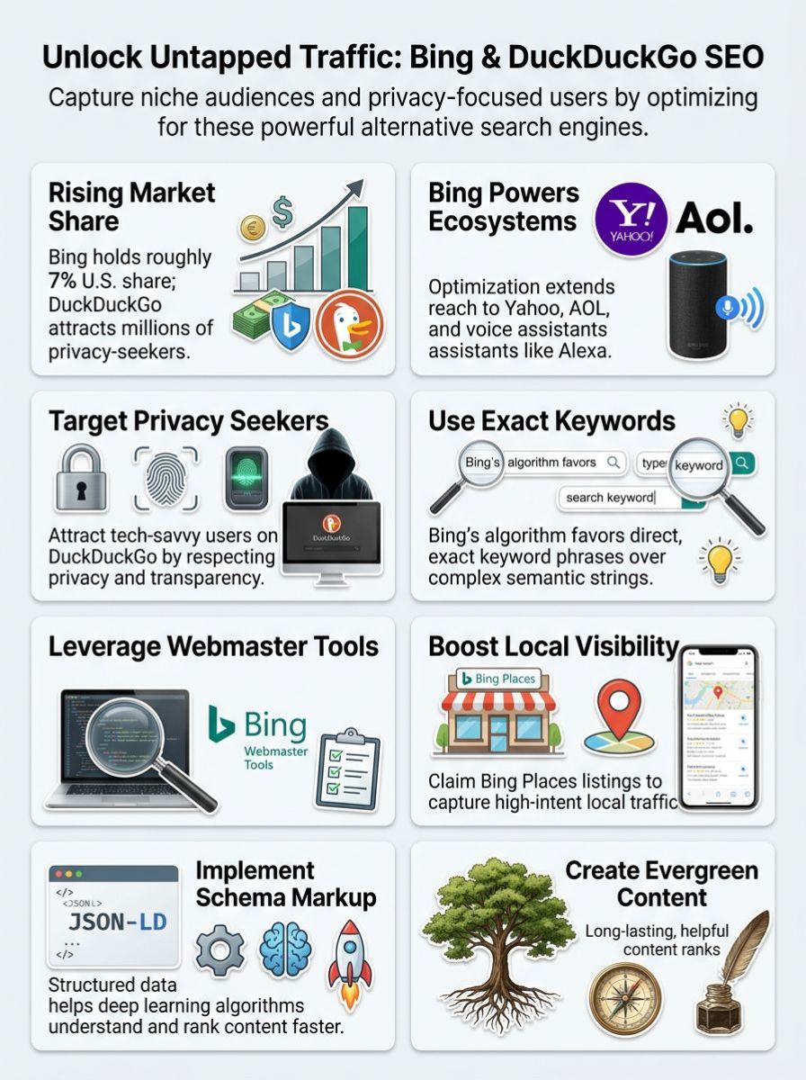 Here’s something worth knowing: Bing and DuckDuckGo can bring high-quality visitors to your site, often with far less competition than the larger search engines. This guide walks through the exact steps to help your content get noticed on these platforms.