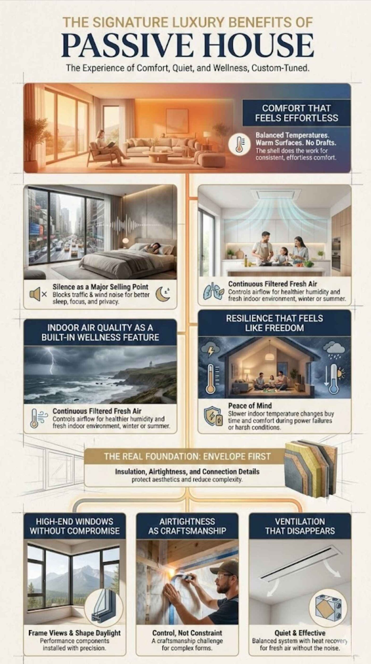 At the same time, luxury projects often spend heavily on features that do not improve daily experience. Passive House rebalances the budget toward outcomes you feel every day.