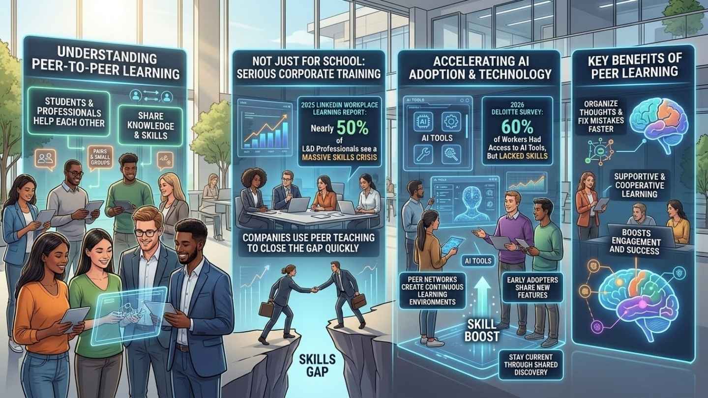 In fact, the 2025 LinkedIn Workplace Learning Report noted that nearly half of learning professionals see a massive skills crisis right now. Companies use peer teaching to close this gap quickly. For example, a 2026 Deloitte survey found that 60 percent of workers had access to new AI tools but lacked the skills to use them properly.