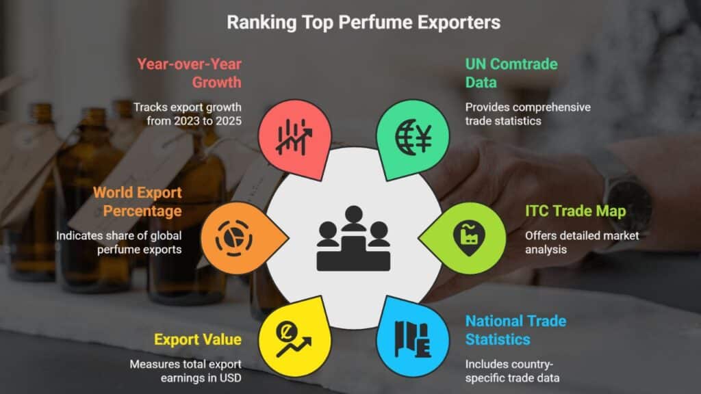 2025’s top perfume exporters mix heritage, fashion, strategic trade hubs, and artisan appeal. France continues to lead. Spain, UAE, and Singapore grow fast thanks to niche focus and re-export power.