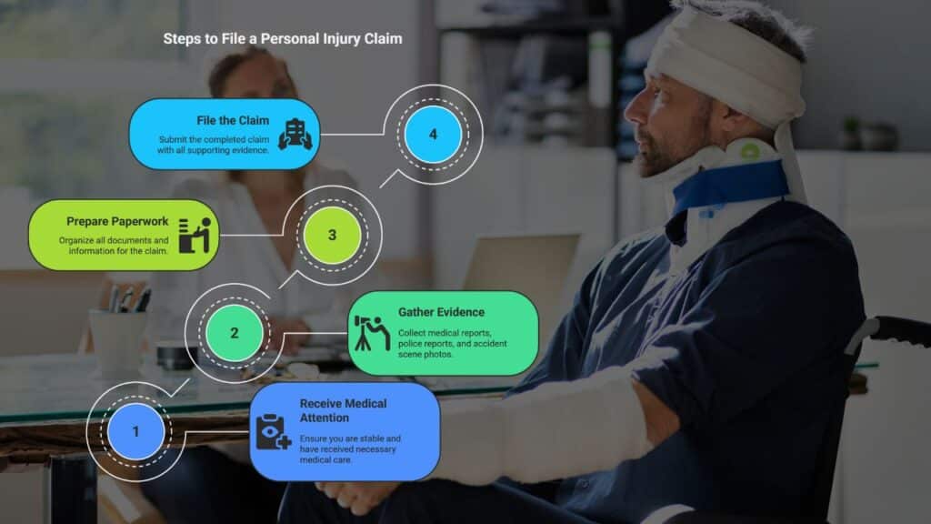 You can file the personal injury claim a few days after the accident. First, ensure you have received the initial medical attention and are relatively stable. Keep in mind: While starting the process is a good idea, it does not mean you should rush into starting the paperwork. Use those few days to gather important evidence, such as the medical report, police reports, and pictures or videos of the accident scene.