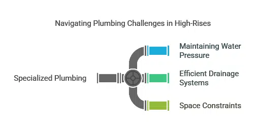 Plumbing systems in high-rise buildings differ significantly from those in smaller structures. Key challenges include: