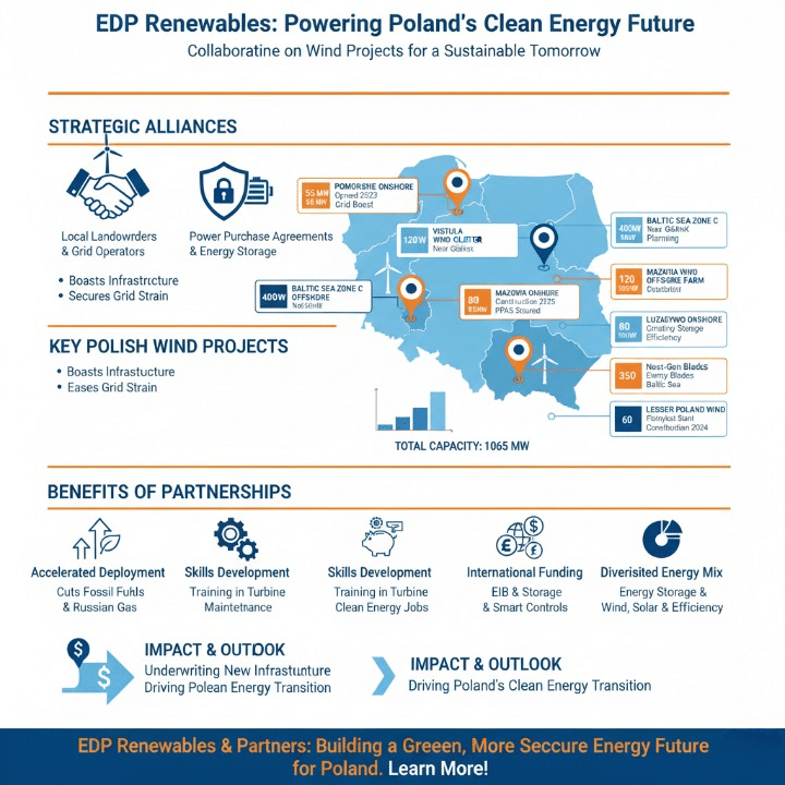 Local partnerships fuel more clean energy. EDP Renewables works with Polish groups to share expertise and funds.
