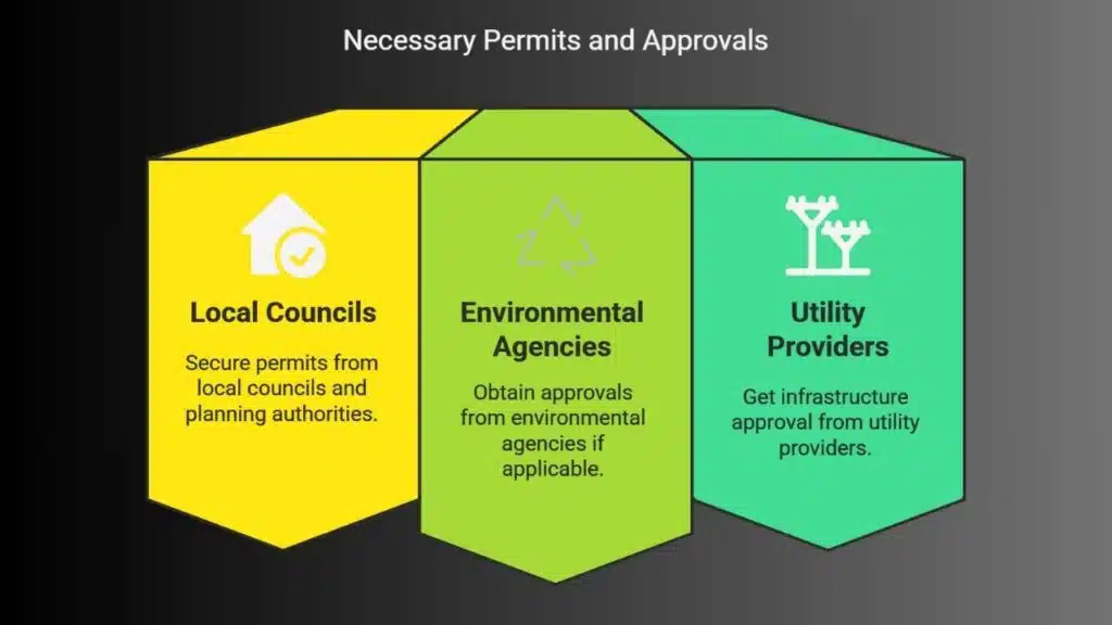Each property development project must comply with local zoning laws and building regulations. Secure necessary permits from: