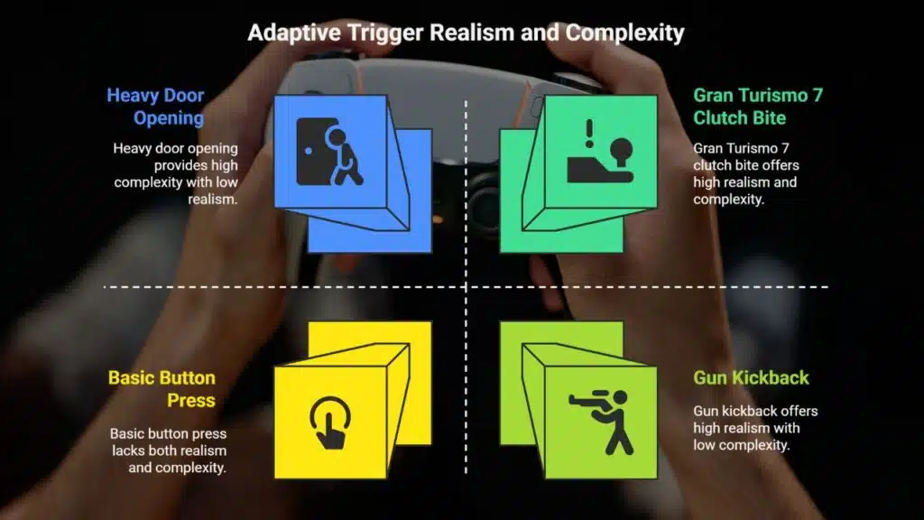 This technology has a lot of different uses and makes a big difference. Gran Turismo 7 and other racing games use adaptive triggers to perfectly mimic the little differences between stopping and accelerating. Players can feel the minor jolt of ABS turning on or the exact bite point of a clutch, which adds realism that goes beyond what they can see. This new method lets developers make a more complex and tangible layer of interaction so that every action, from shooting a gun to opening a heavy door, feels different and heavy, requiring the player to pay more attention.