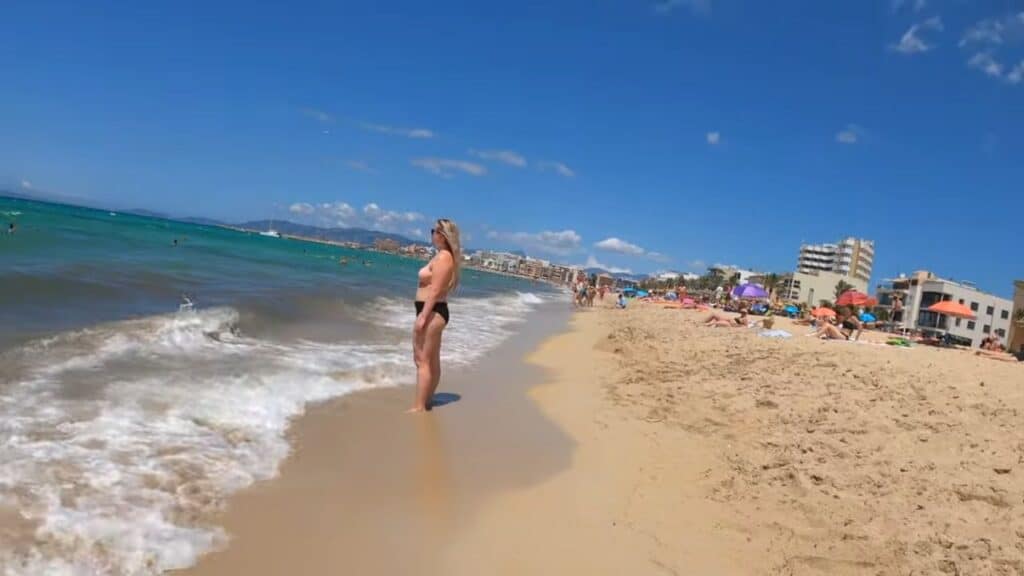 Dense vegetation creates a natural barrier between the beach and the outside world, giving it that jungle-like feeling that earned its name. Palm trees sway gently overhead while crystal-clear waters lap against the shore in a steady rhythm.