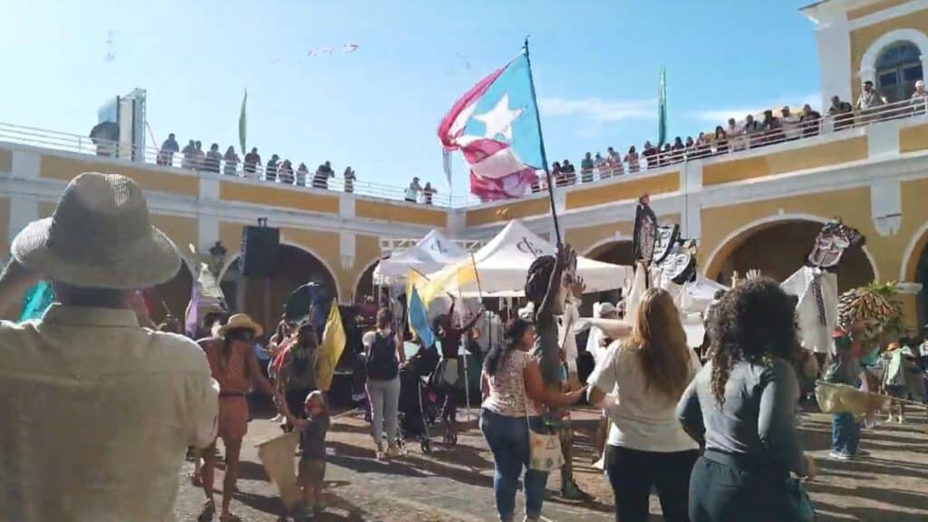 Streets fill with people wearing colorful Puerto Rican flags as decorations. Local bands play salsa, reggaeton, and traditional folk songs on every corner.