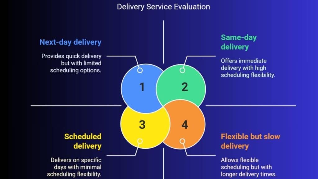 Timely delivery is essential. Select a service that provides flexible scheduling. Some providers offer same-day or next-day options, and some have scheduled delivery days for particular zones. Knowing how long delivery takes also makes it easier to plan your meals. Honest service providers will inform you in detail about any delays or changes.