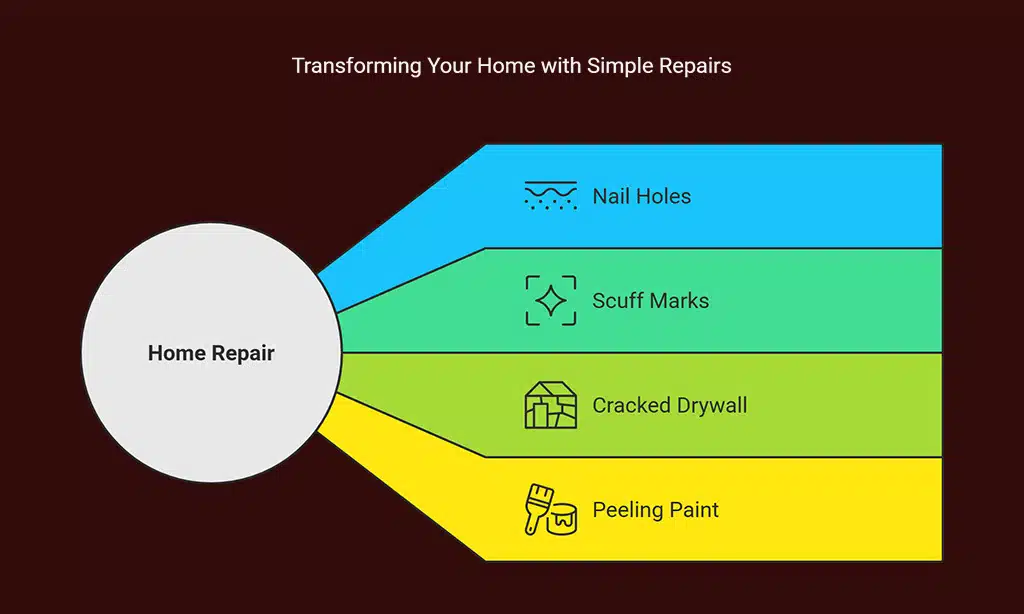 Cracks, dents, and nail holes can suggest neglect. Fixing these issues helps your home look move-in ready.